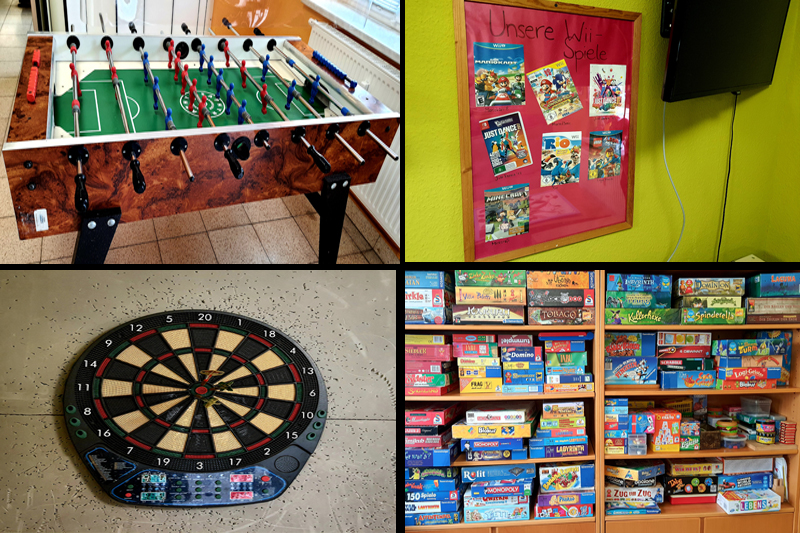 Es besteht die Möglichkeit viele Indoorspielen wie Tischtennis, Billard, Dart, Tischkicker und verschiedene Turniere zum Kräftemessen zu nutzen.