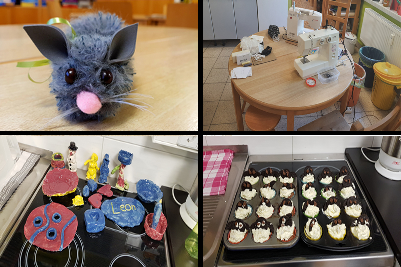 Möglichkeiten sich kreativ zu beschäftigen gibt es für euch beim Kochen, Basteln, Töpfern und zu den Projektarbeiten mit aktuell gewählten Themen.